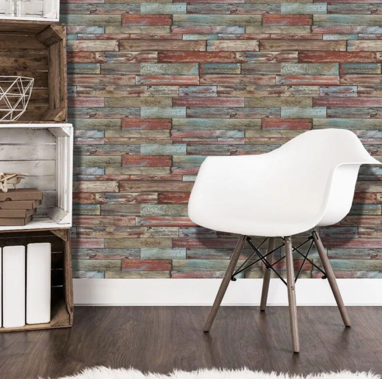 Wood Block Panel Wallpaper Dark Oak Heavyweight Realistic Wood Grain Rasch